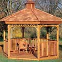 Build your own gazebo or buy a kit?Looking into buying, or building your own gazebo from scratch? Good, because there are a lot of options. For the do-it-yourself handy craft type person, building your own gazebo with a little help from a practically free plan, (very cheap) can get you going. Most gazebo plans include drawings, material list, elevation, building instructions and advice. (see below) Resources Looking for a great book about Gazebo construction? "Building the Perfect Gazebo", by David Schiff is it! From floor to ceiling, this is the guide that will take backyard builders step by step through the entire process of constructing an individualized, impressive gazebo. Visit our Bookstore Another choice is to bite the bullet and buy a gazebo kit. Sure they're expensive around $2,000 and up. But a good garden structure will cost you! Kits typically come with either pre-cut or panelized pieces. If you are a couch potato at heart, go for the panelized kits. They cost a little more, but you'll get your gazebo up faster. Kit designs - Amish country and spa gazebosKeep in mind that there are many gazebo styles and kits to choose from. Three popular choices include: Amish country gazebos, Traditional and Victorian. Octagonal and Hexagon shaped gazebos come in sizes 8', 10,' 12,' and 14.'